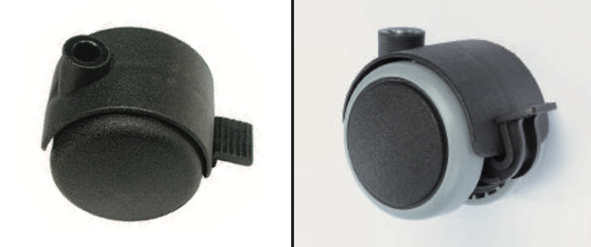 Nábytkové otočné kolo s brzdou. Polypropylenová vidlice a kolo s kluzným ložiskem.