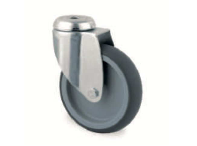 Přístrojové otočné kolečko s brzdou. Dodáváme s krycími pokličkami proti namotávání nití. Disk kola: polypropylen, běhoun: tenteperéne (termostatická pryž), kluzné ložisko.