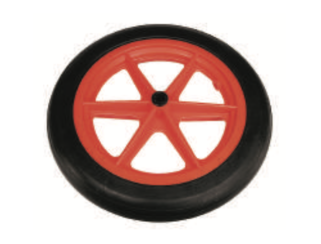 Kola s plastovým diskem. Polyuretanová obruč. Použití: sekačky, vozíky, domácnost, nemocnice. Uložení: kluzné ložisko