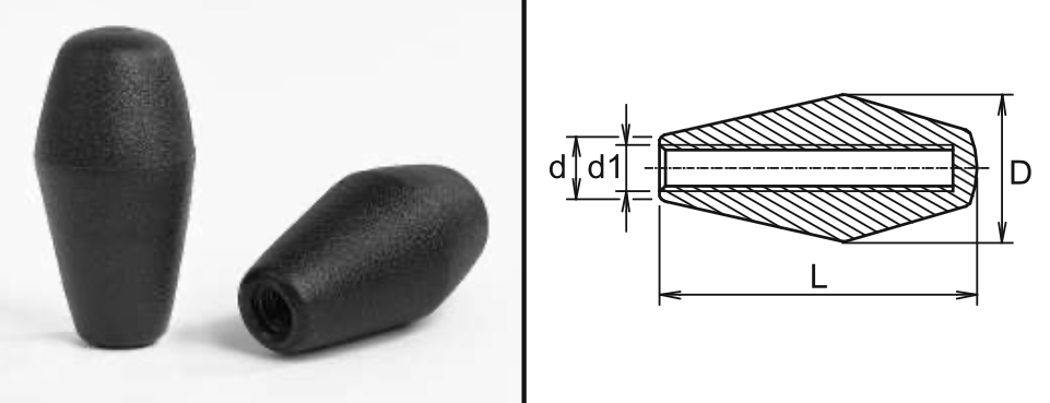 Kuželová rukojeť s plastovým závitem - matná