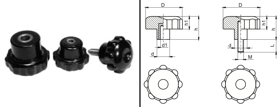 Ovládací element. Možnosti zalisování závitu/otvoru: M6, M8, M10, M12, 7H7, 8H7, 10H7, 12H7. Požadovaná délka šroubu: 10 - 50mm.