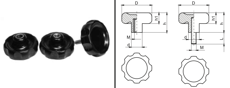 Ovládací element. Možnosti zalisování závitu/otvoru: M6, M8, M10, M12, 7H7, 8H7, 10H7, 12H7, 16H7. Délka šroubu: 10 - 50mm.