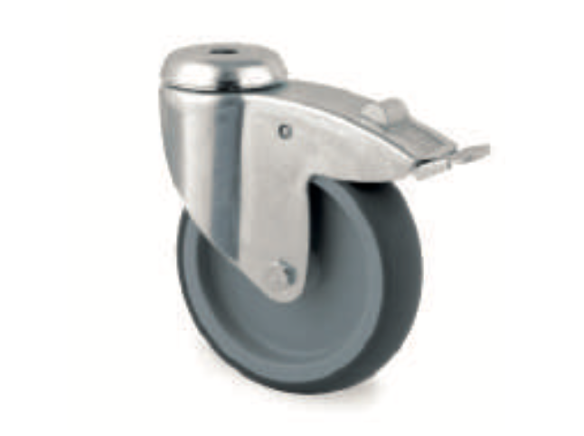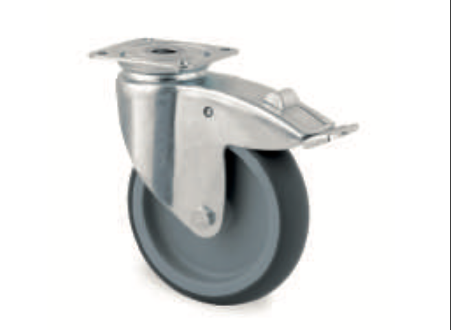 Přístrojové otočné kolečko s brzdou. Dodáváme s krycími pokličkami proti namotávání nití. Disk kola: polypropylen, běhoun: tenteperéne (termostatická pryž), kluzné ložisko.
