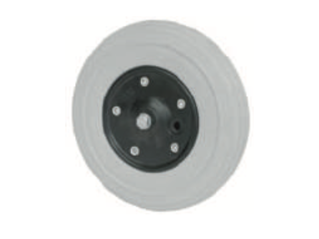 Kola s plastovým diskem a s šedou obručí z lehčeného Polyuretanu. Použití: pro invalidní vozíky. Uložení: kuličkové ložisko