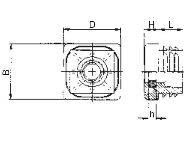 Záslepka s kovovým závitem. Pro zatížení 50 - 100 kg.